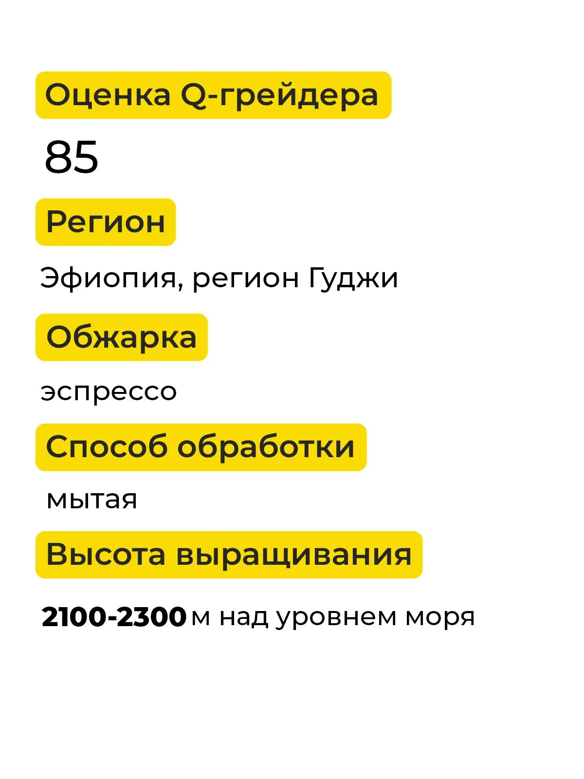 Кофе выращивается в высокогорном регионе Гуджи на высоте 2100–2300 метров над уровнем моря. Плодородные вулканические почвы и уникальный микроклимат создают условия для формирования сложного вкуса, насыщенного аромата и округлого тела.